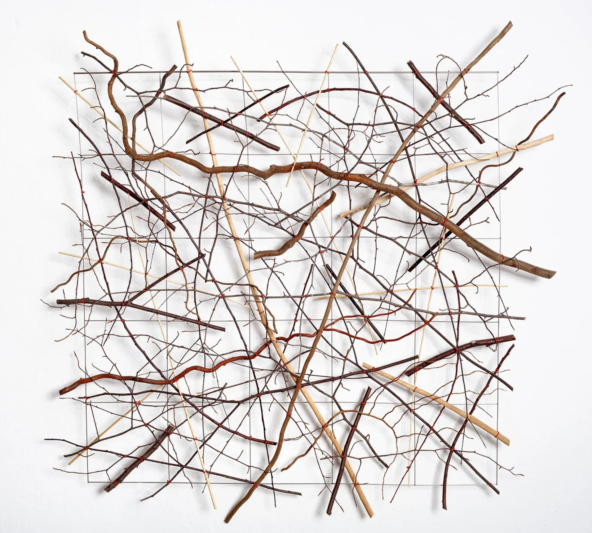 mixed woods, stainless steel wire, cable ties